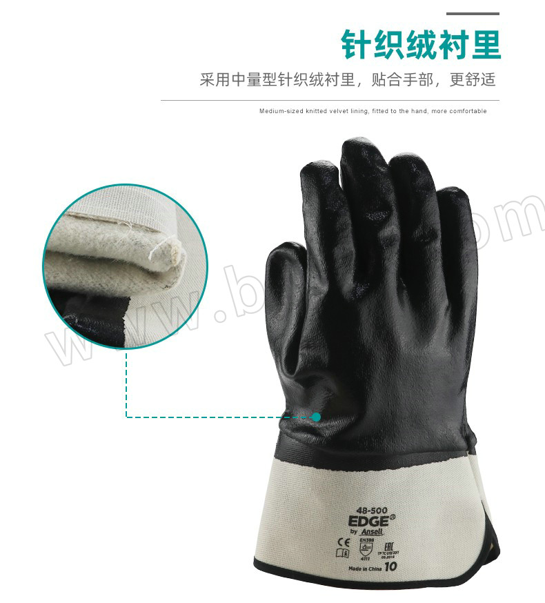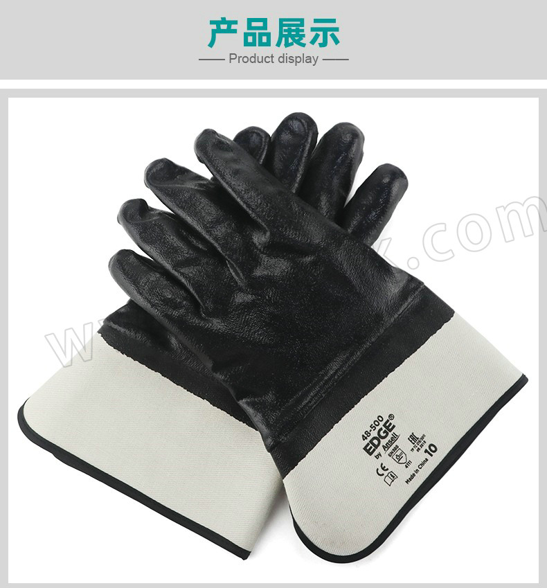 ANSELL/安思尔 经济款掌背全涂丁腈橡胶手套 48500 黑色手套 白色袖口 1打