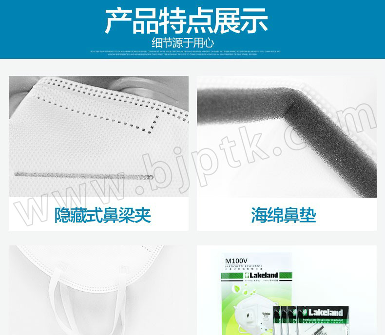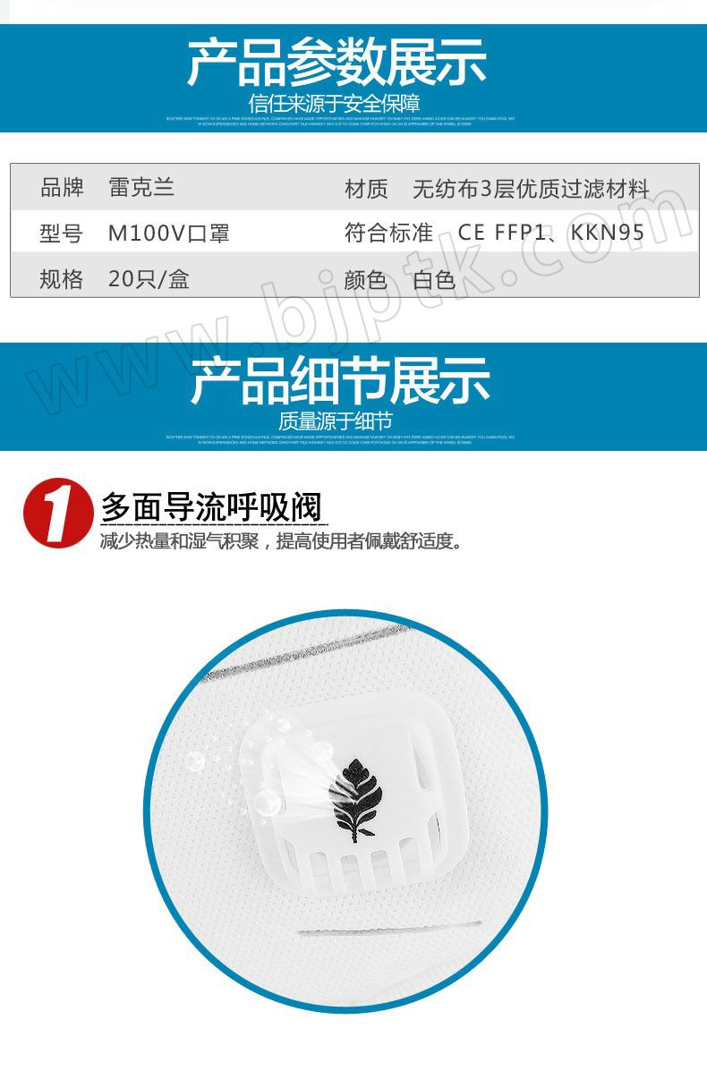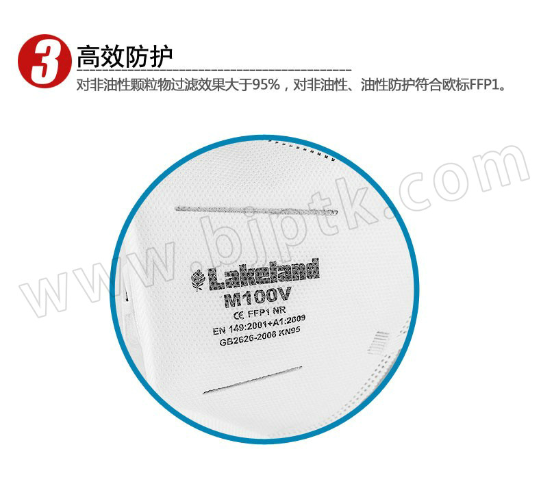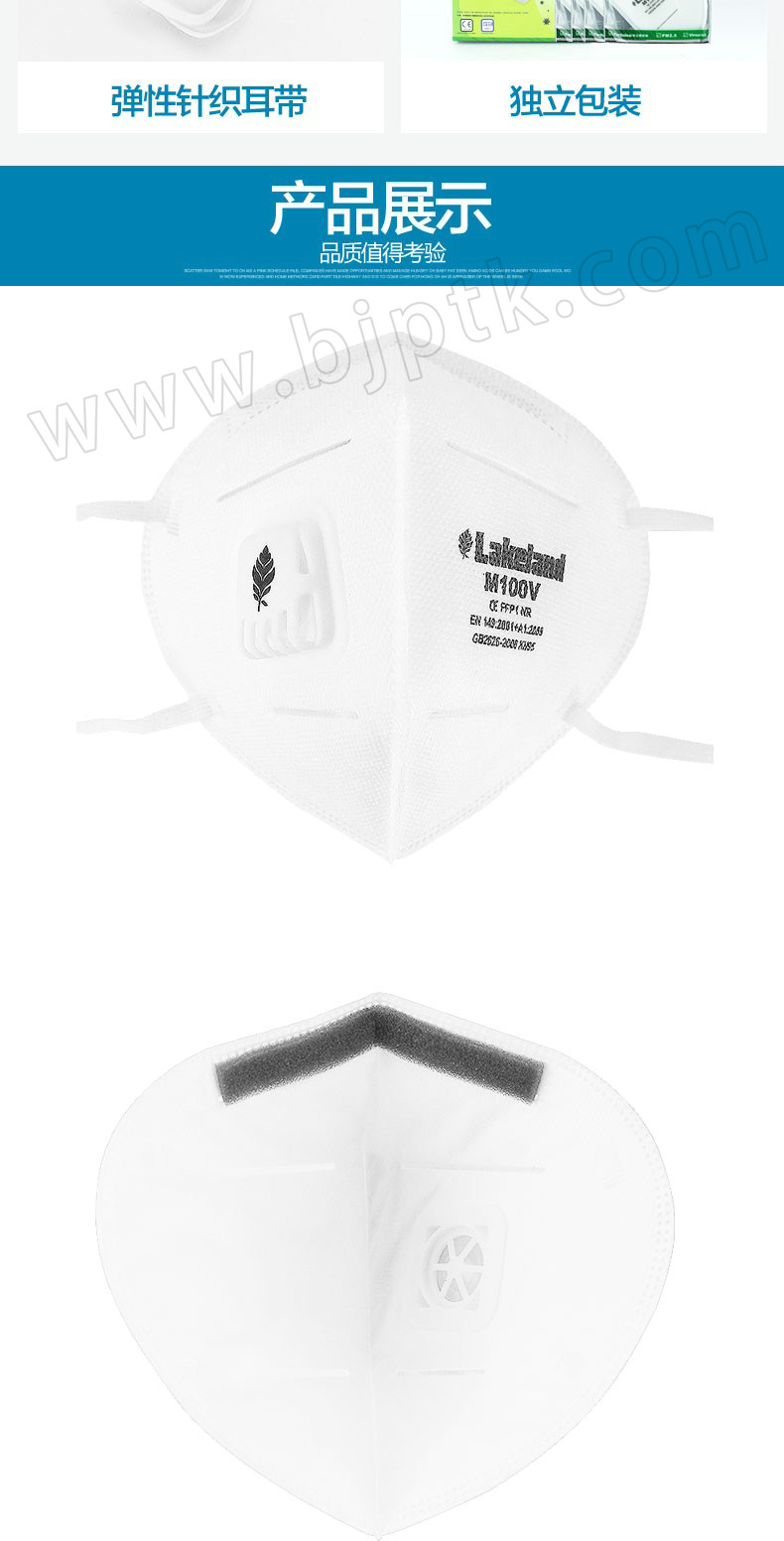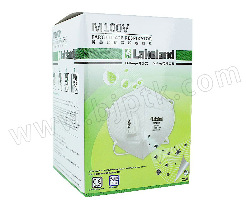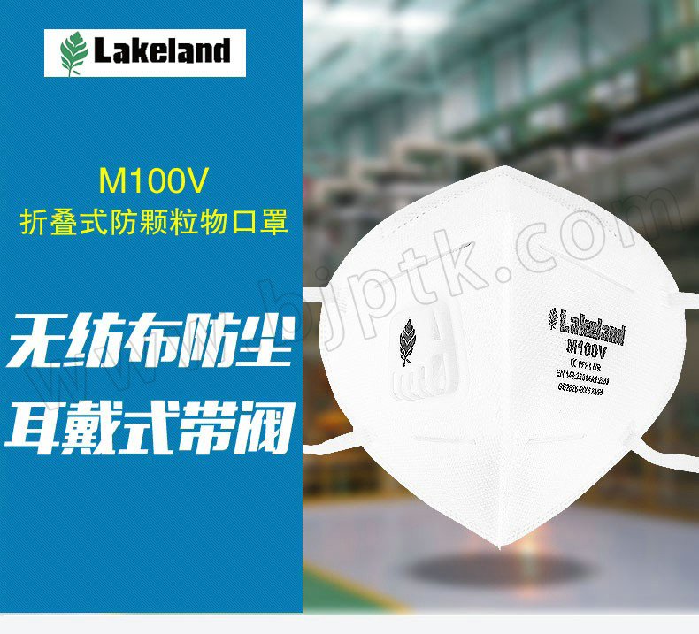 LAKELAND/雷克兰 自吸过滤式防颗粒物折叠口罩 M100V KN95 耳戴式 带阀 1盒