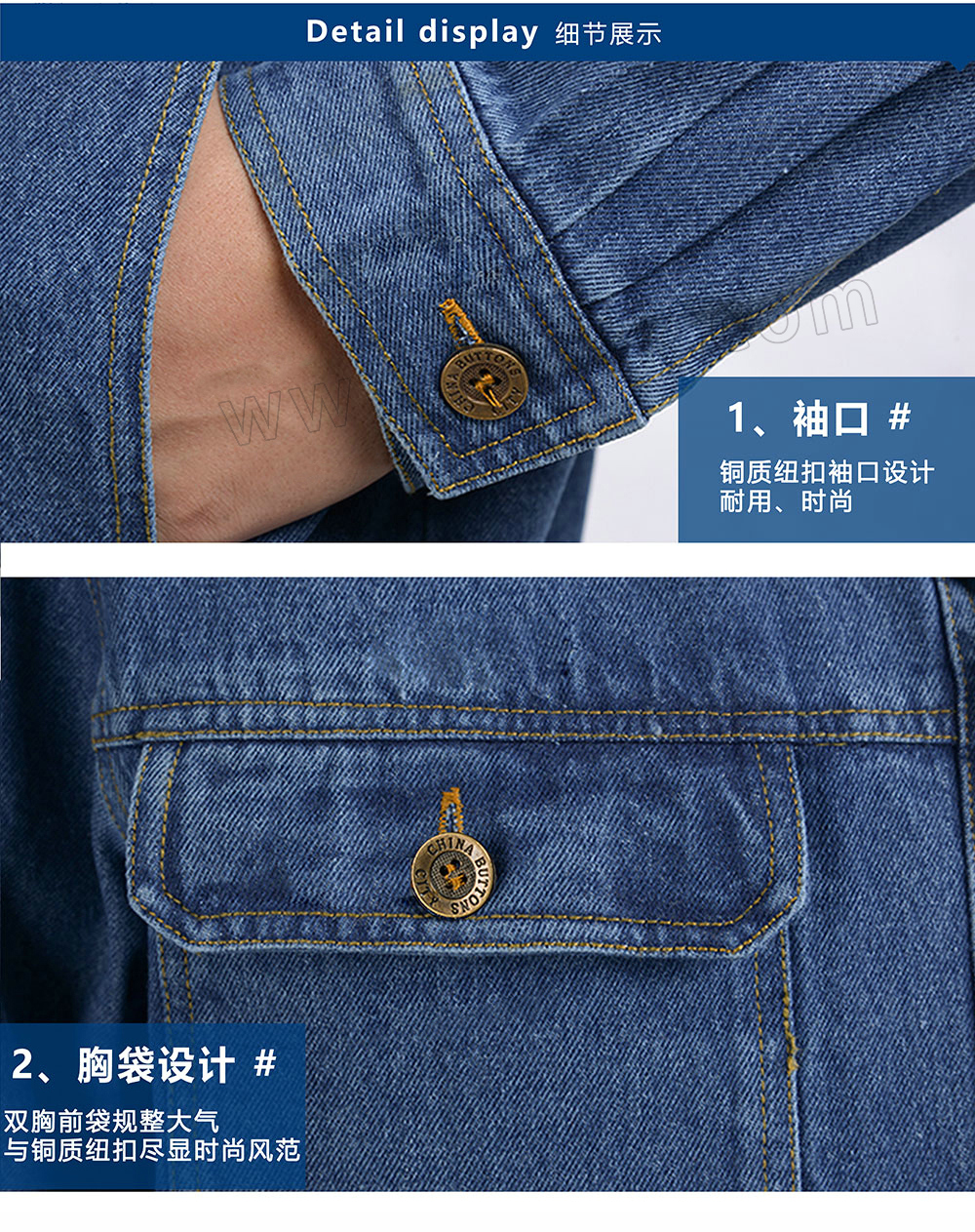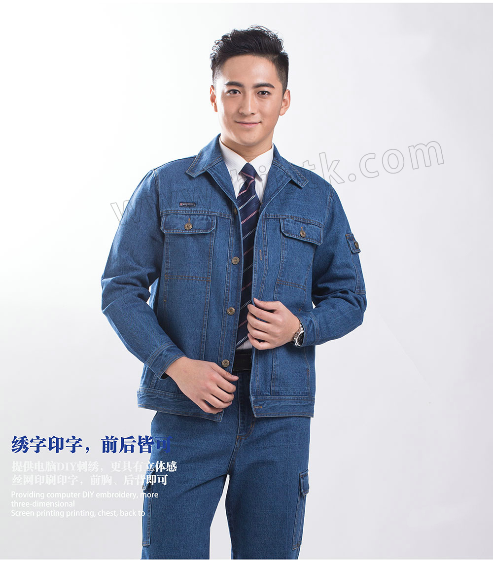 PTK长袖纯棉加厚牛仔电焊机械工作服套装男女同款PTK-1302
