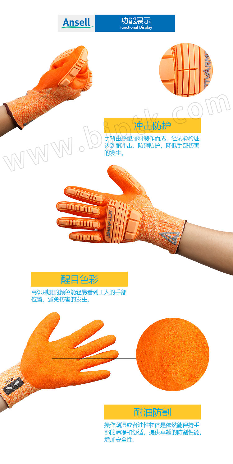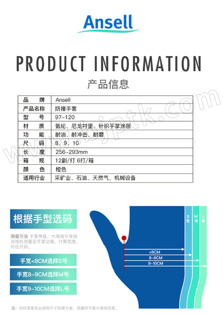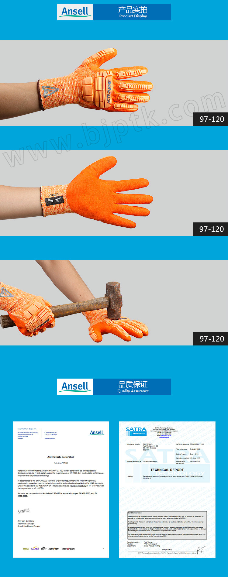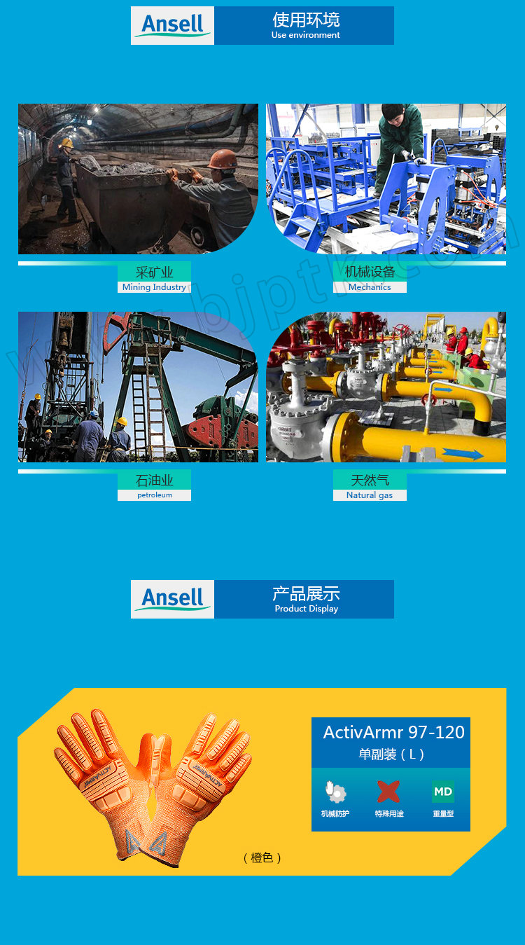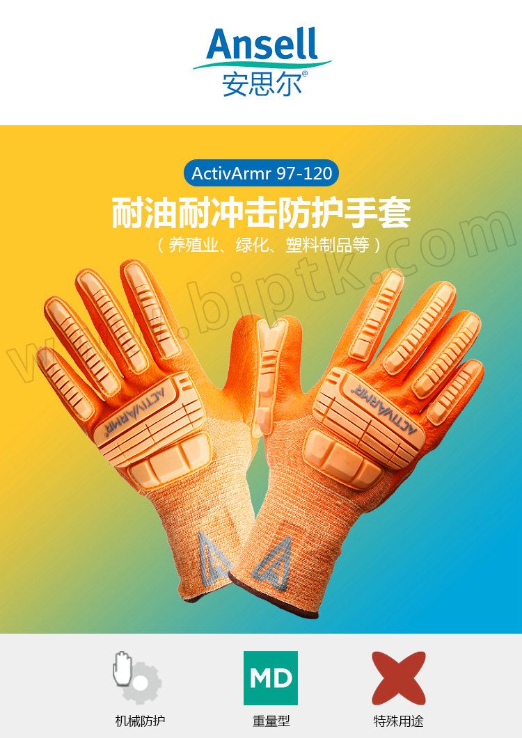 ANSELL/安思尔 97-120 防撞手套 耐油耐冲击耐磨防滑防护手套 1副