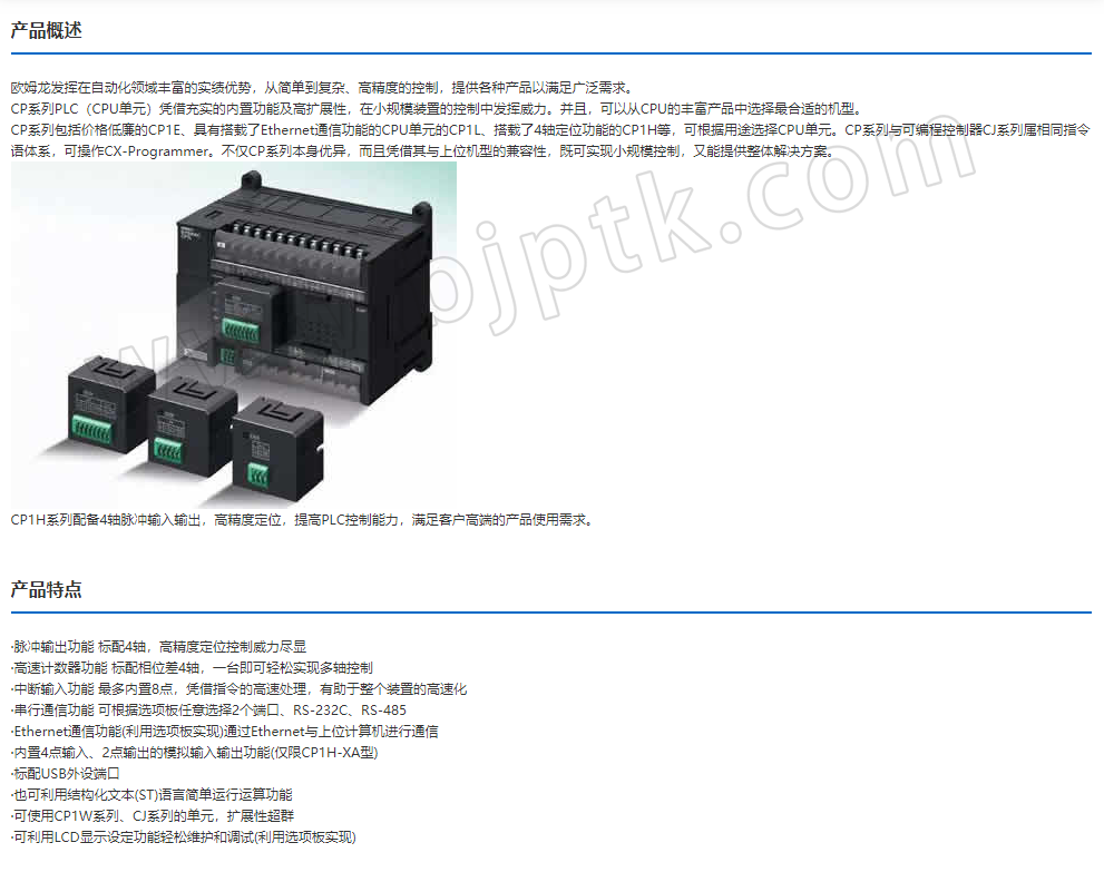 以上是北京普泰克经贸有限公司提供的OMRON/欧姆龙  CP1H系列CPU单元的介绍及产品图片信息,关于OMRON/欧姆龙  CP1H系列CPU单元的价格报价、其他型号以及如果购买OMRON/欧姆龙  CP1H系列CPU单元问题,请来电咨询!普泰克经贸期待你的来电!