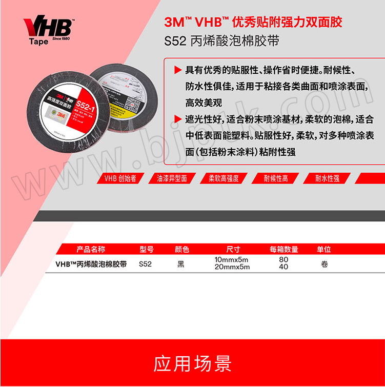 3M高强度双面胶、防水、耐高温 黑色S52-2 20mm宽5m长 1卷