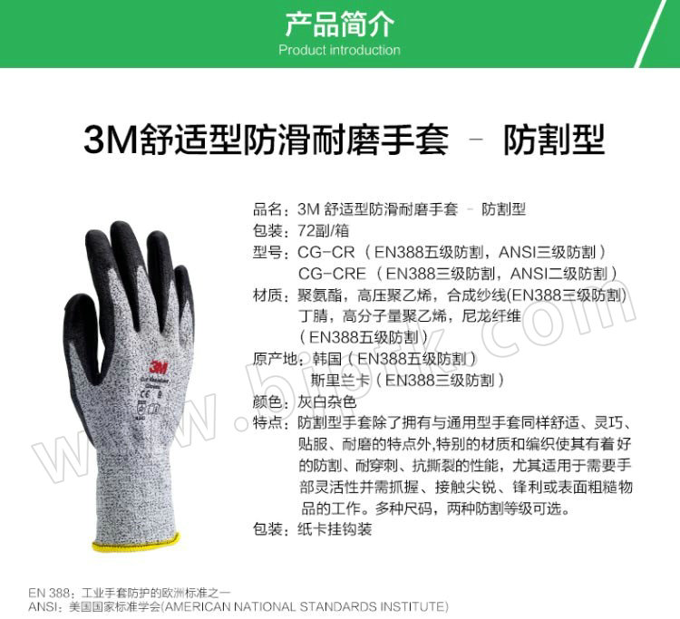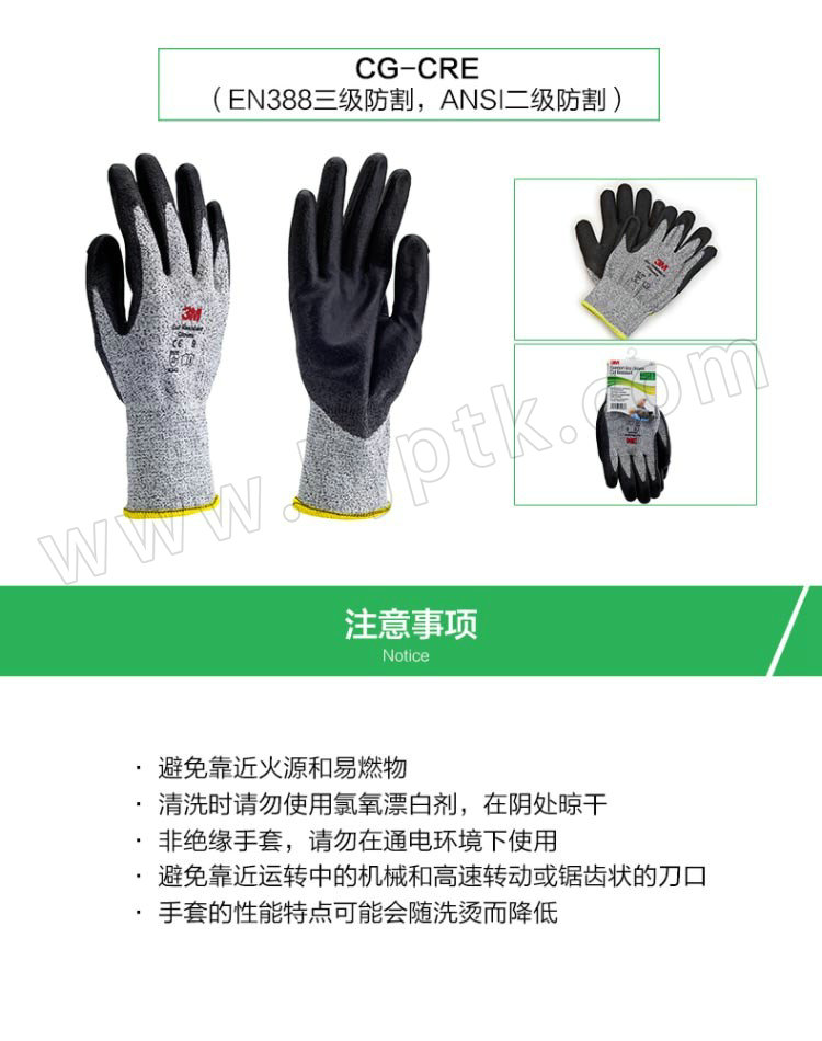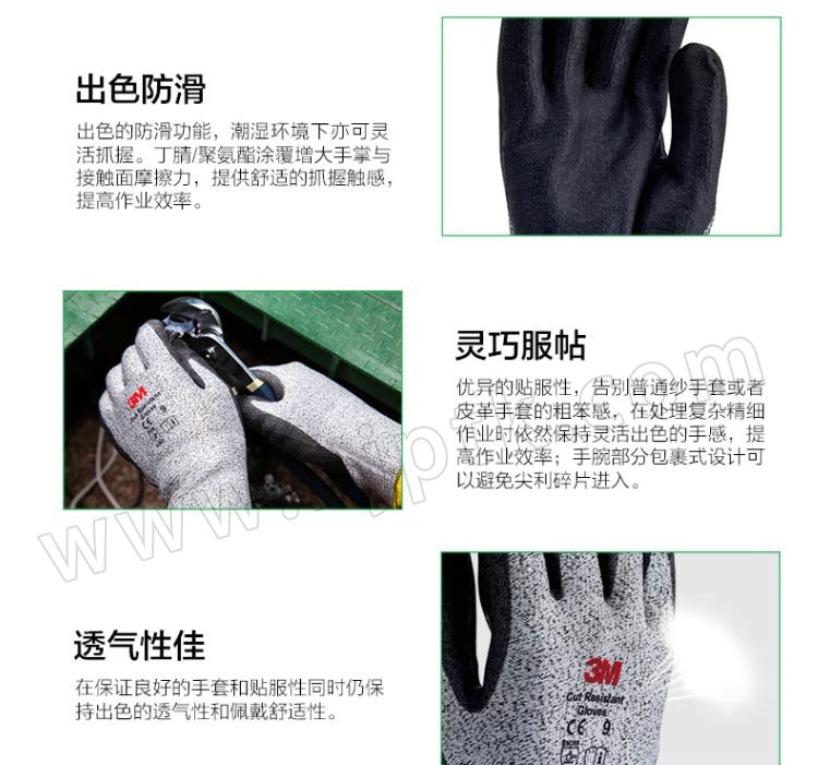 3M 舒适型防滑耐磨防割手套 CG-CRE(L2) 3级防割 1副