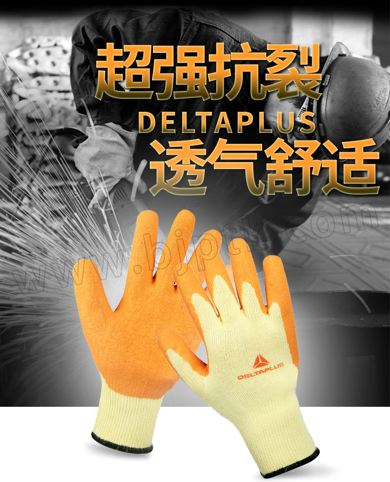 DELTA/代尔塔 棉涤混纺乳胶涂掌手套 201730 橙色涂层 1打
