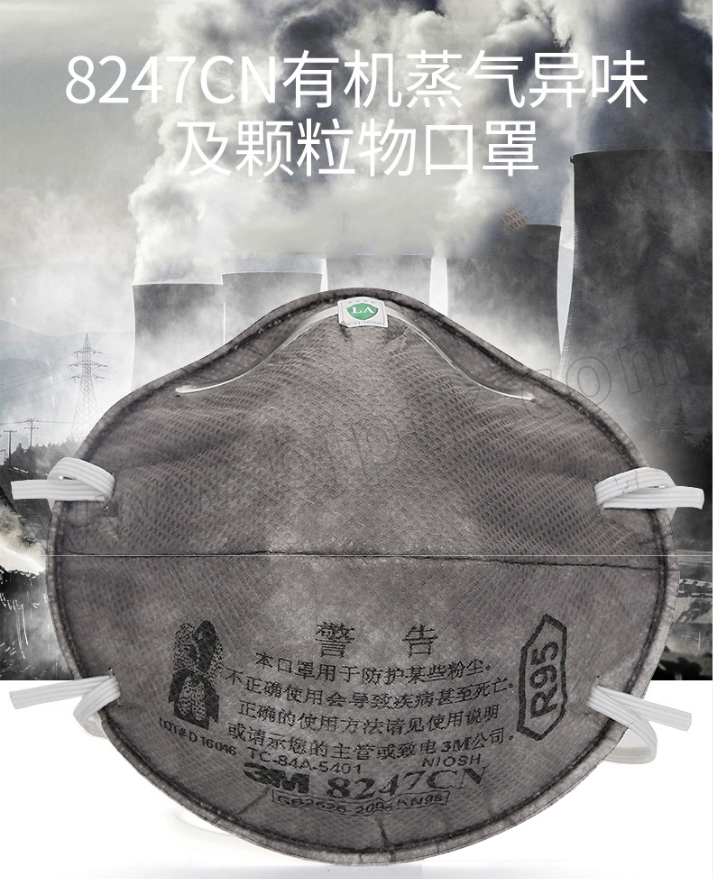 3M 罩杯型有机蒸气异味及防颗粒物口罩 8247CN R95 头戴式 1盒